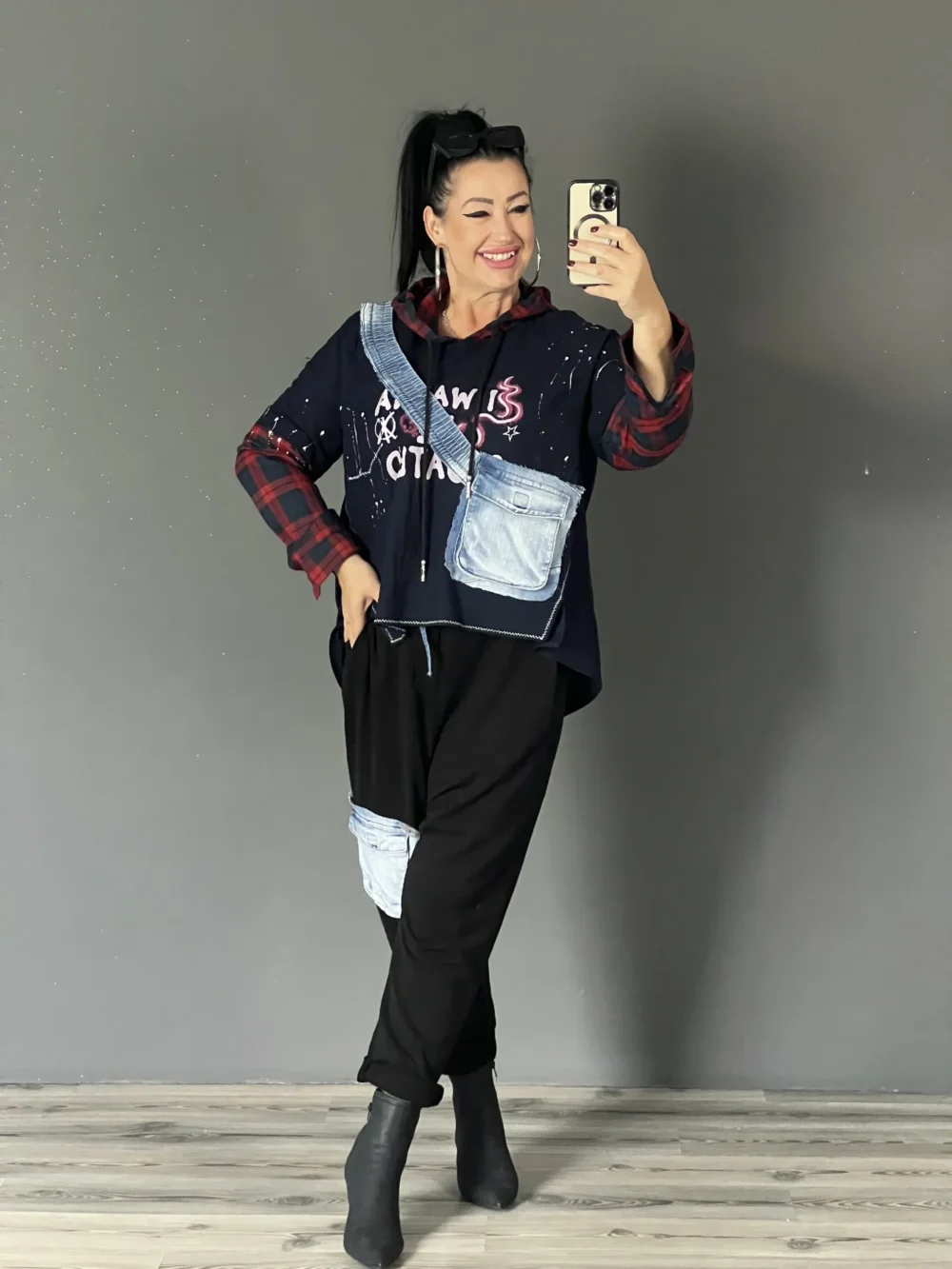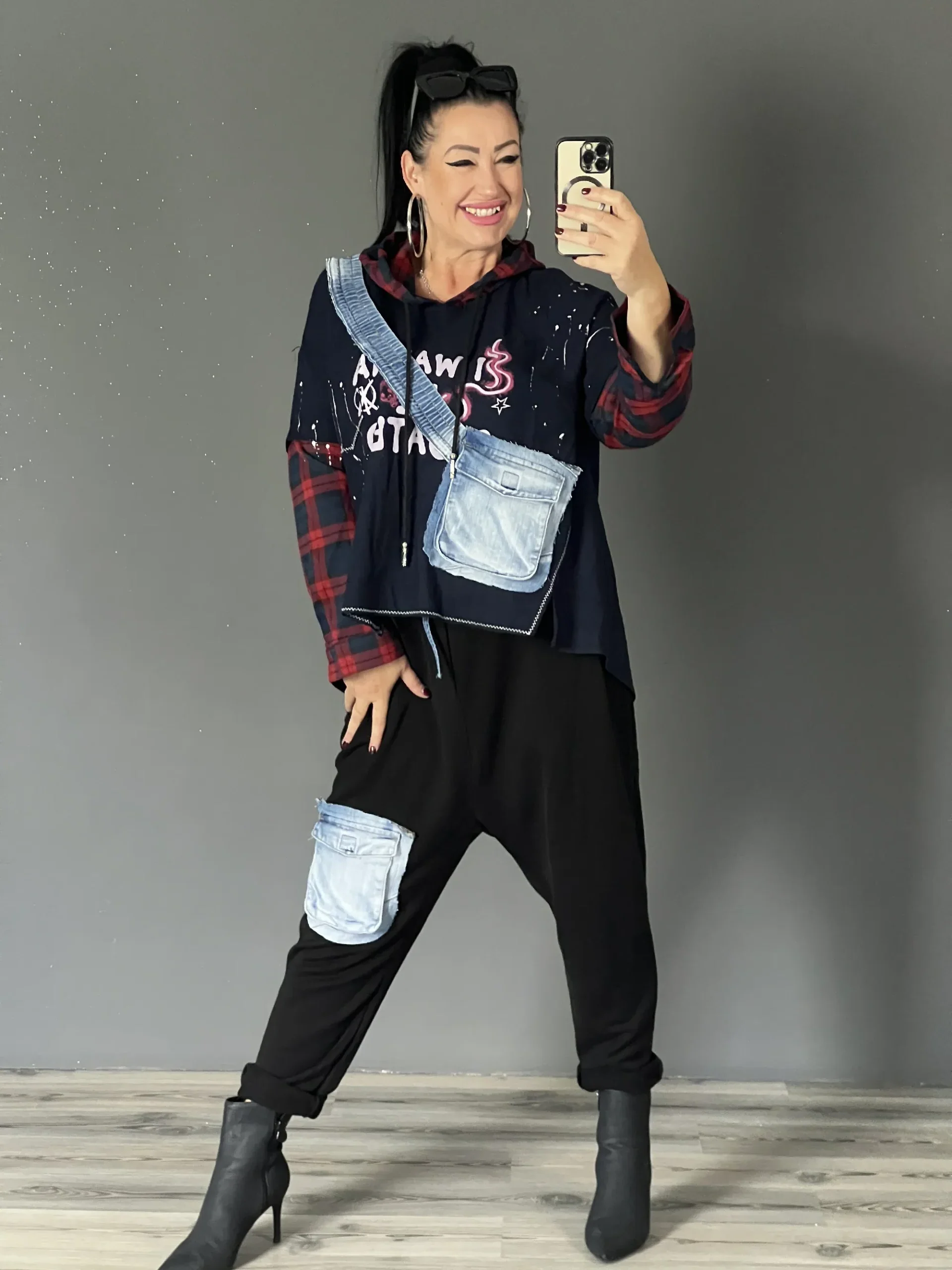 Kockás farmerzsebes felsó
