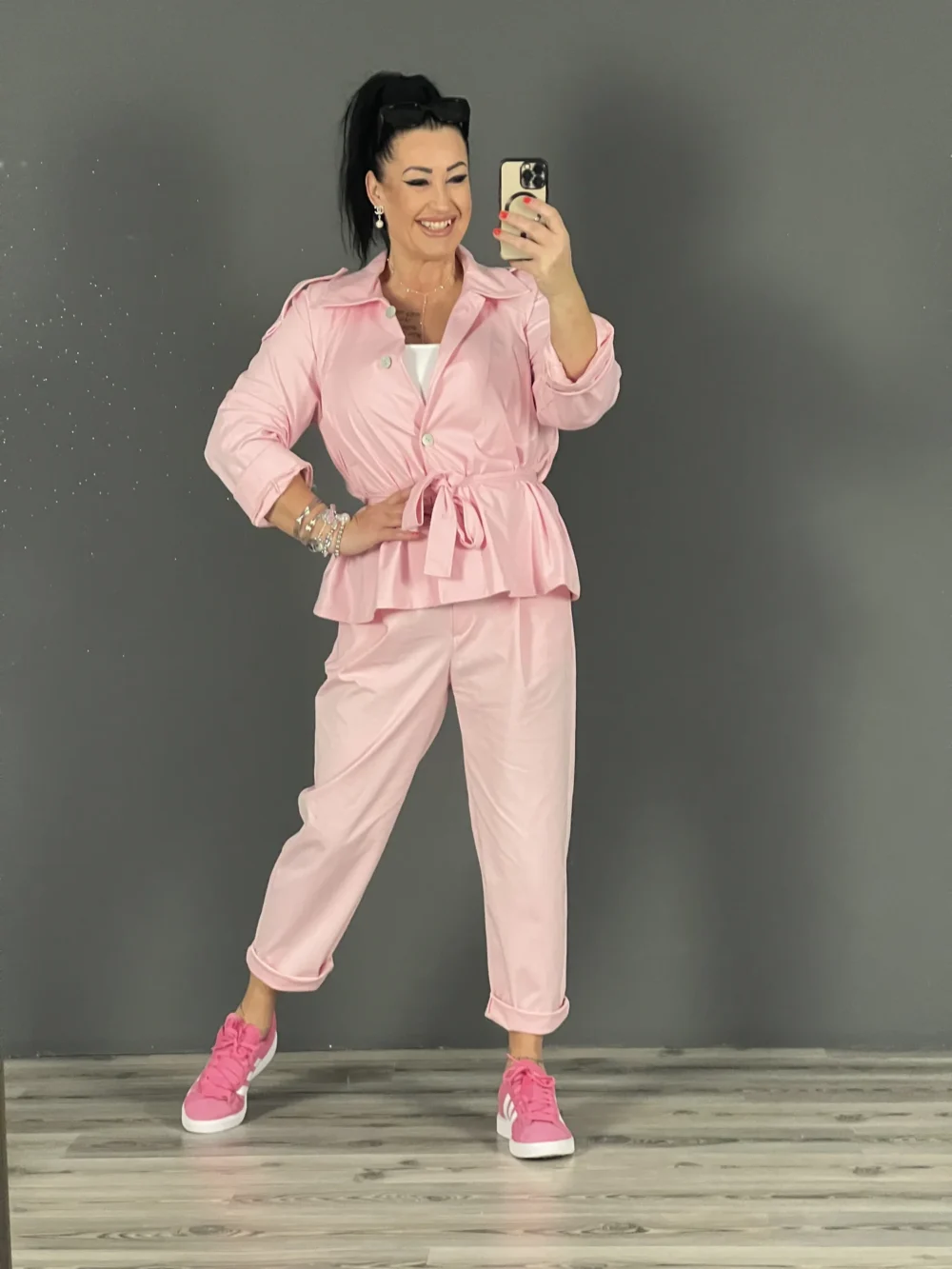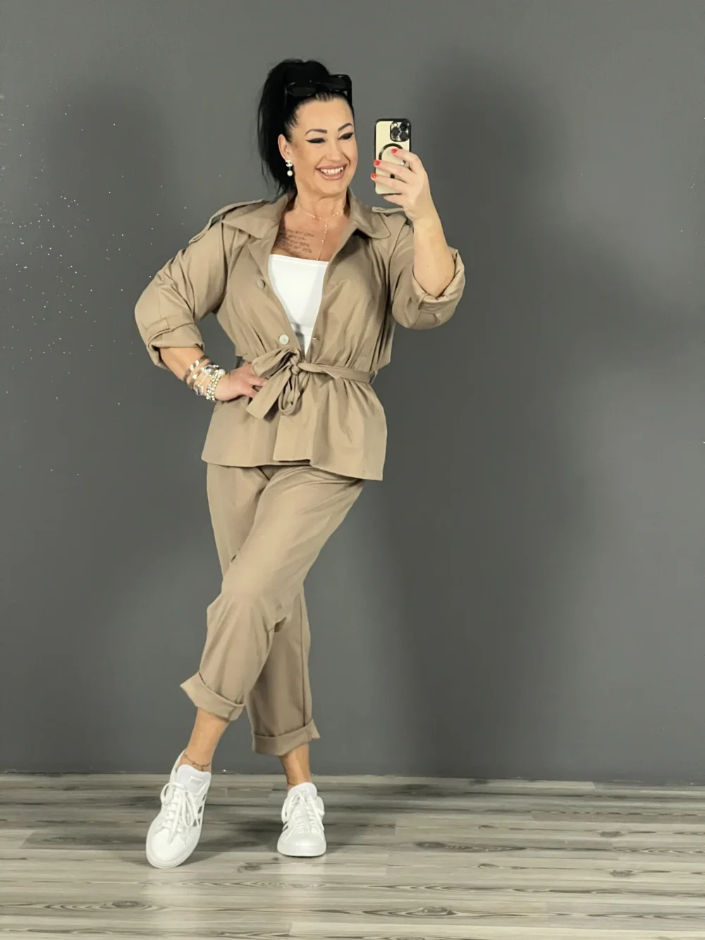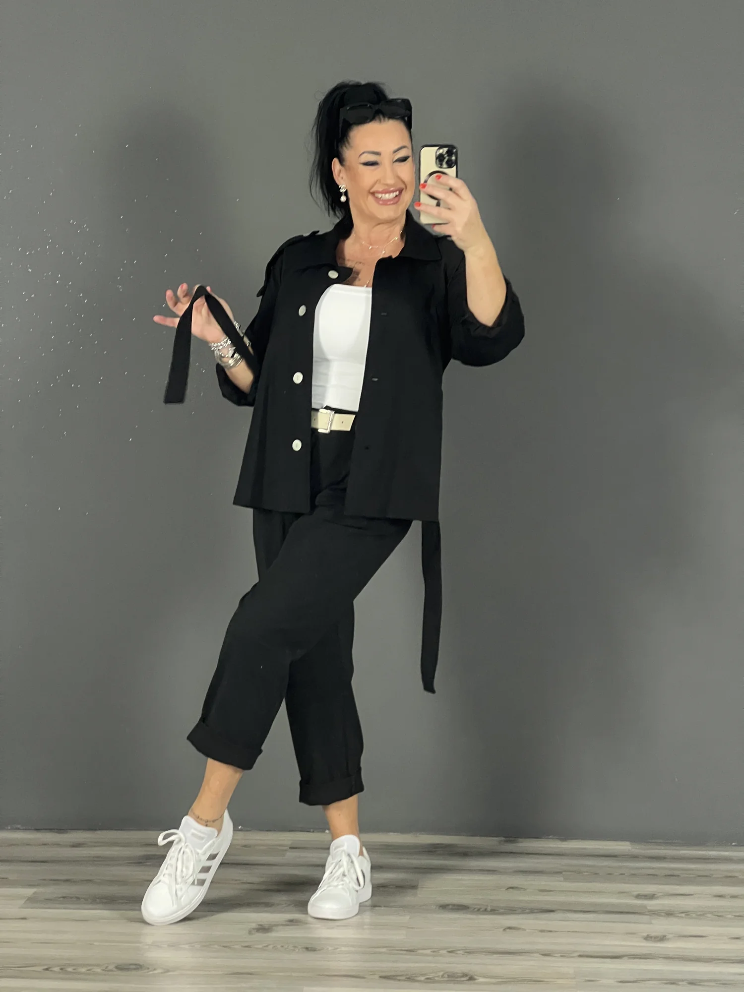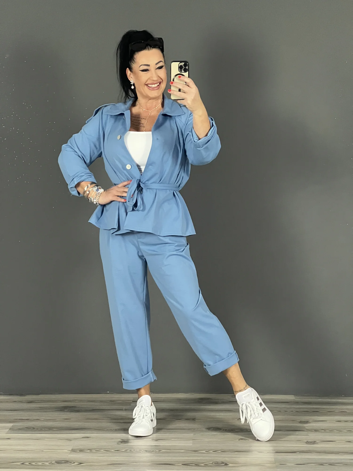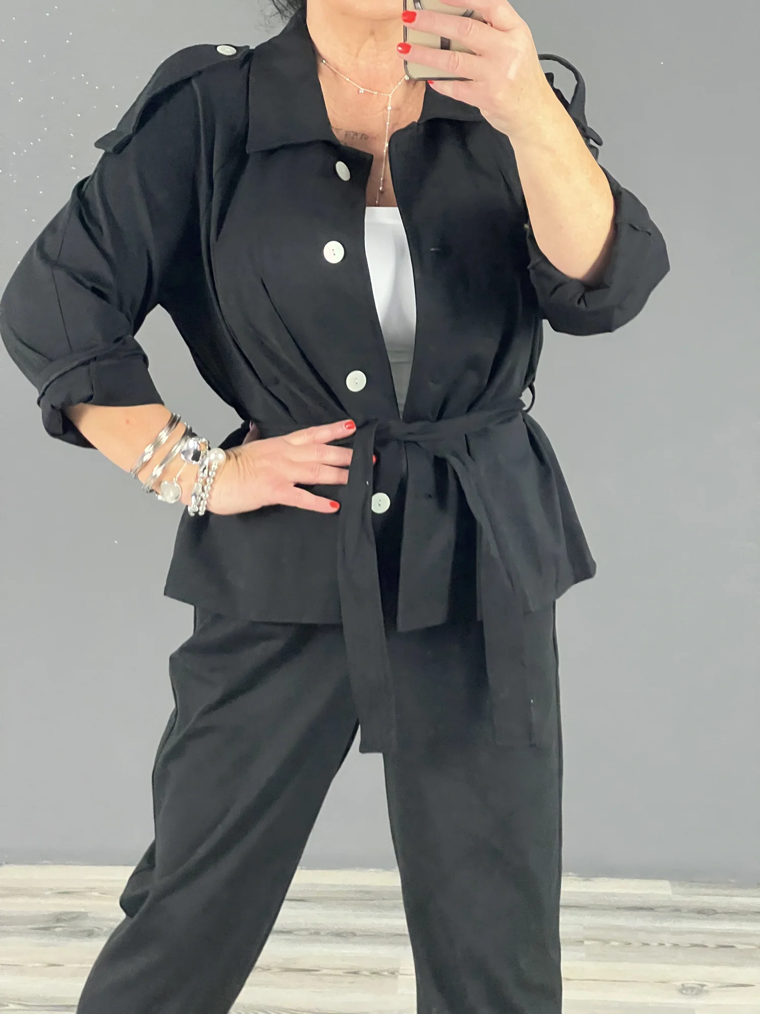 Nagyméretú blézer övvel
