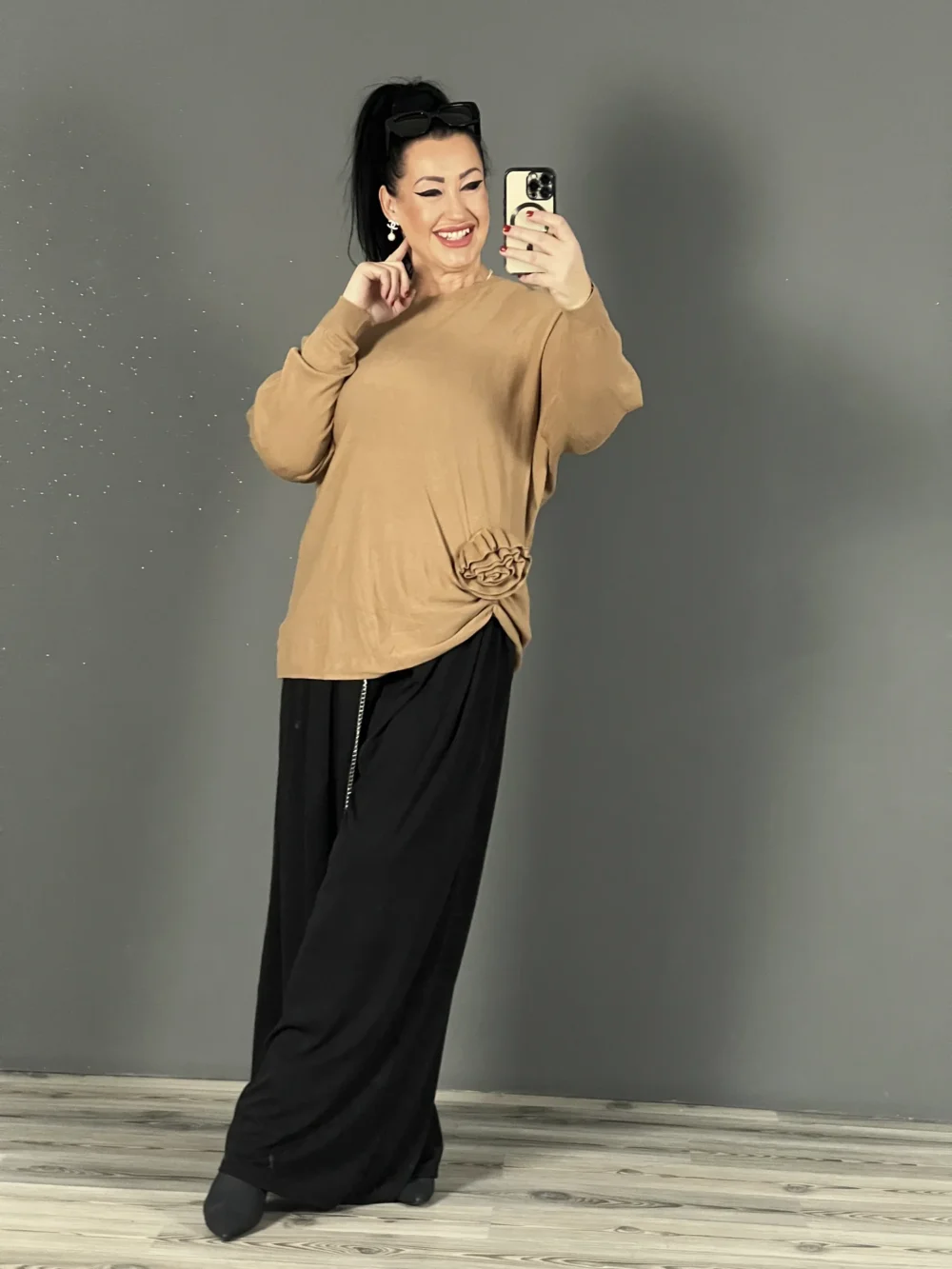 Kotött tunika virág díszítéssel