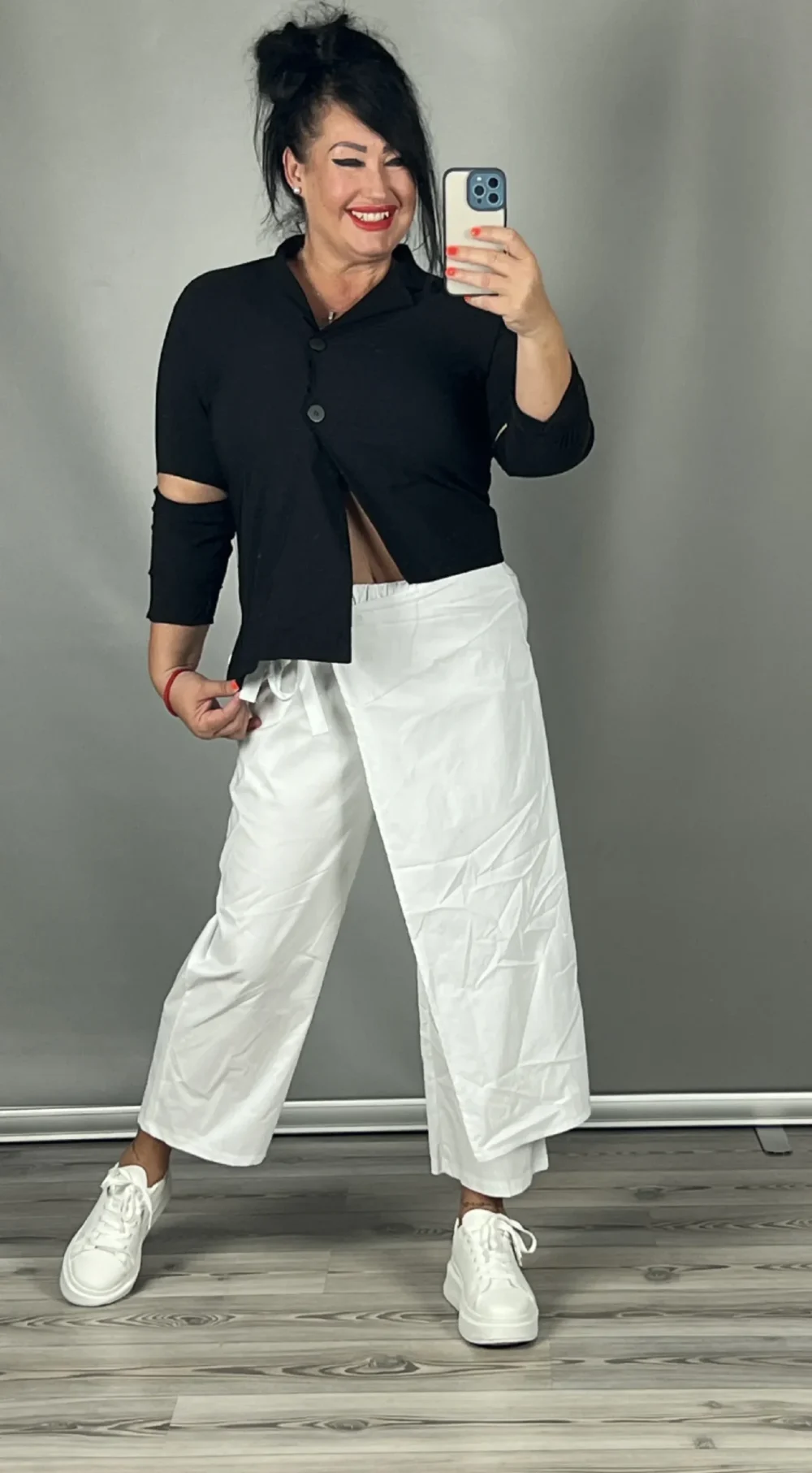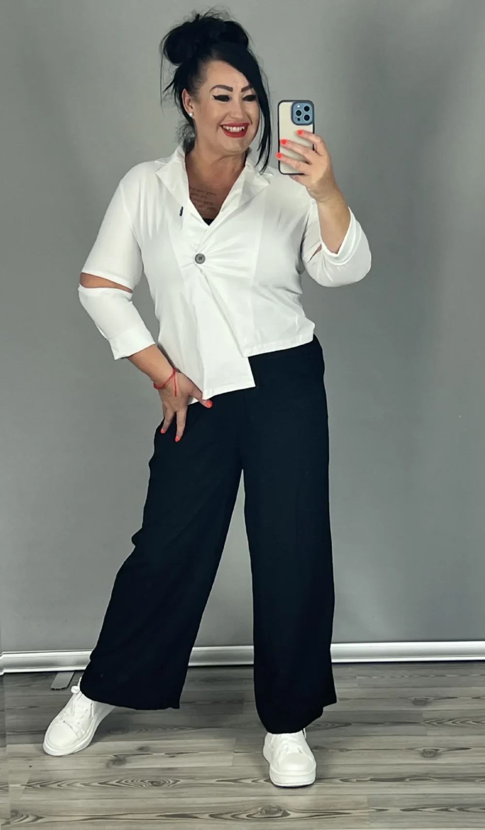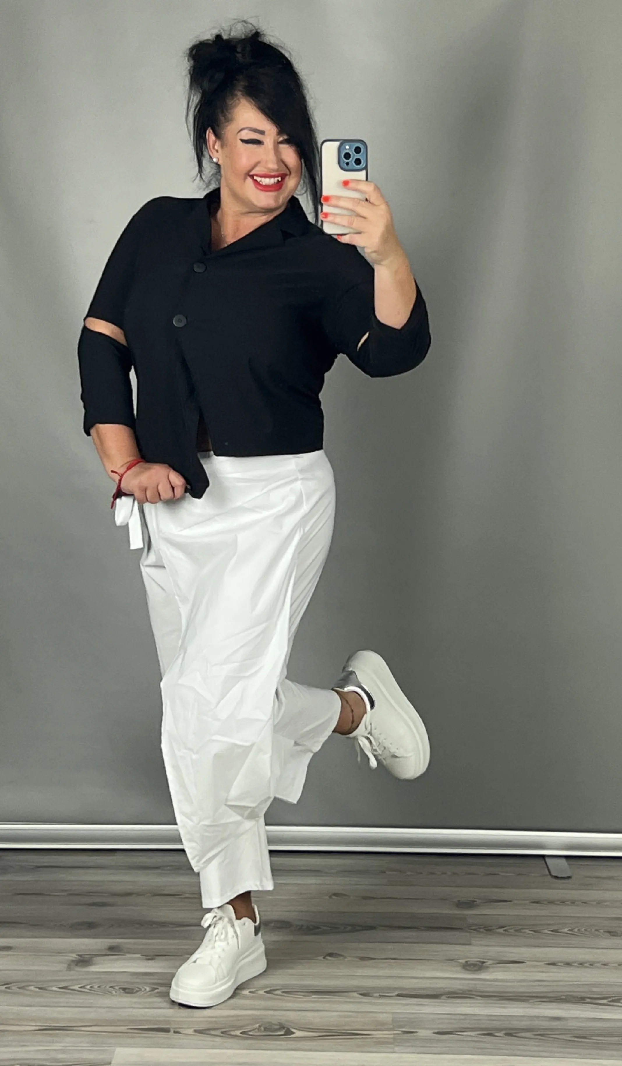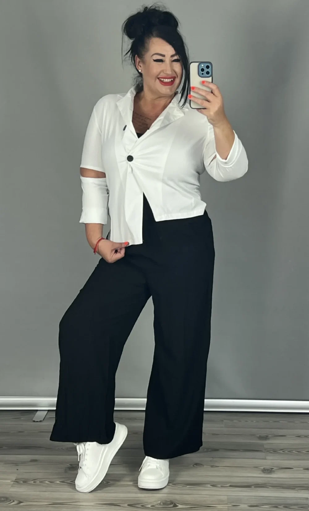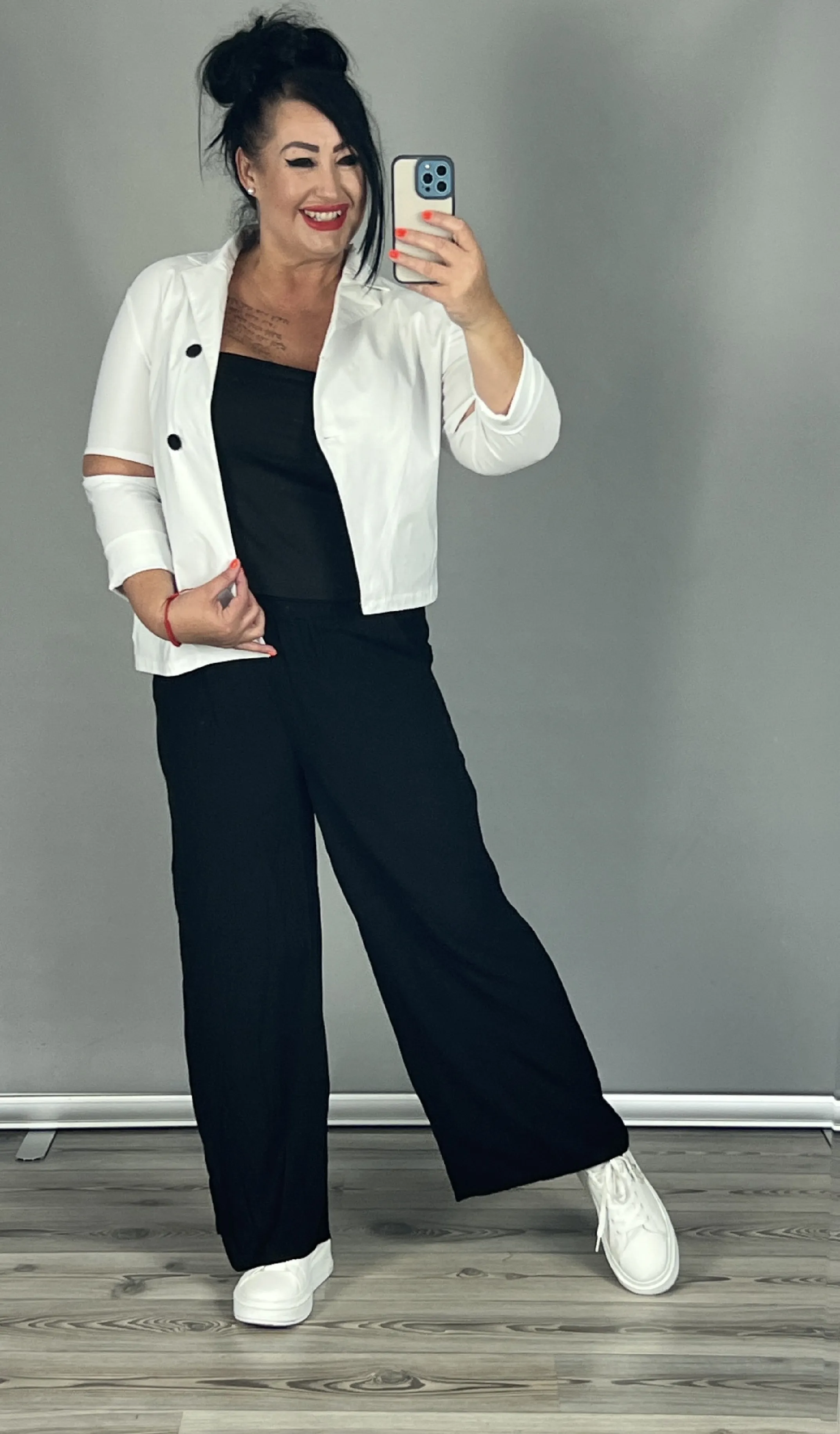 Fehér hasított ujjú blézer. A termék one size méret, a feltüntetett méretekre ajánljuk.