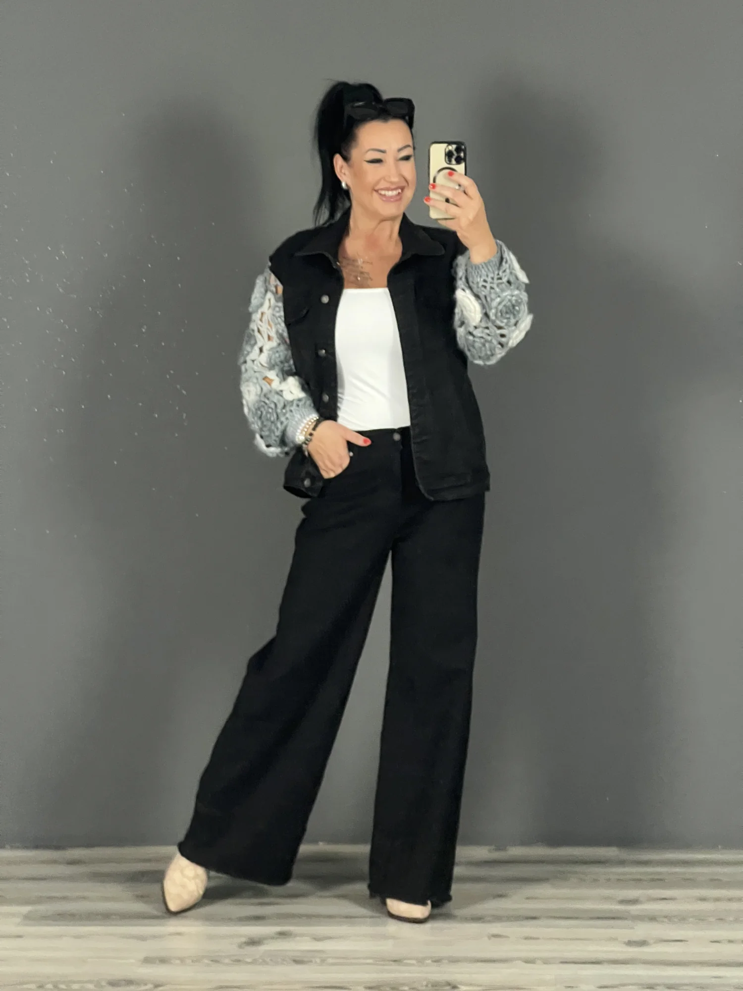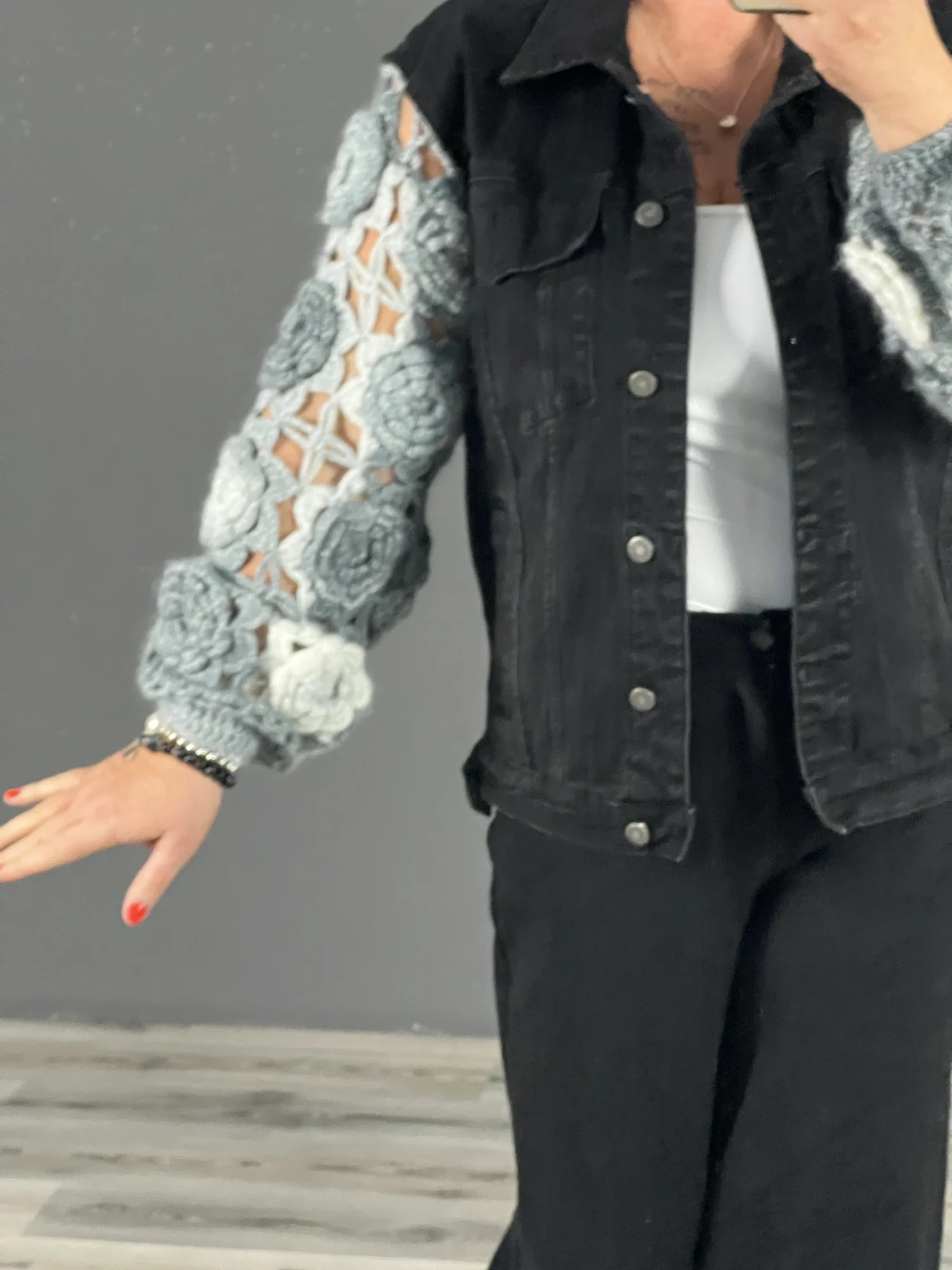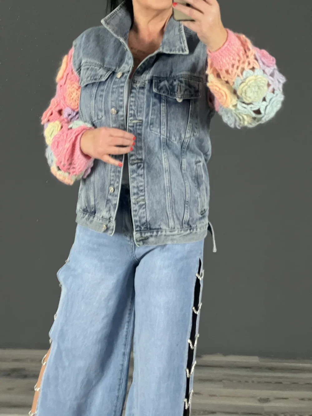 Horgolt ujjú farmerkabát